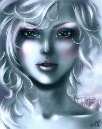 #beauty #cold #creepy #digital #eyes #girl #macabre #portrait #purple #snake #teeth #violet #woman #digitalpainting #painting #snow #white