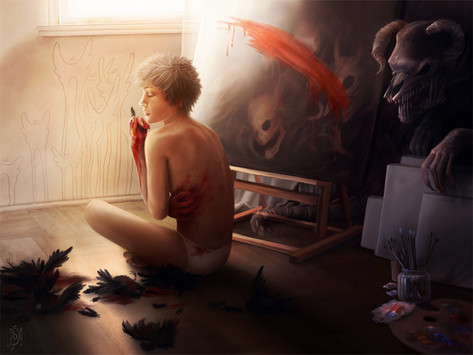 Breathtaking *A*. I adore the colorsheme and how you painted the fabric.