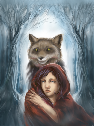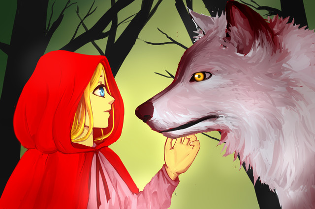 #artwork #blondehair #bookillustration #digitalart #digitalpainting #fairytale #girl #illustration #redridinghood #wolf #wolfcharacter #wolfgirl #artillustration