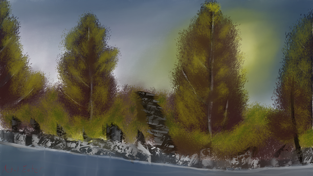 I tried following this Bob Ross tutorial - Autumn Days from s4e12Materials: Liquitex Basic acrylics