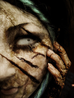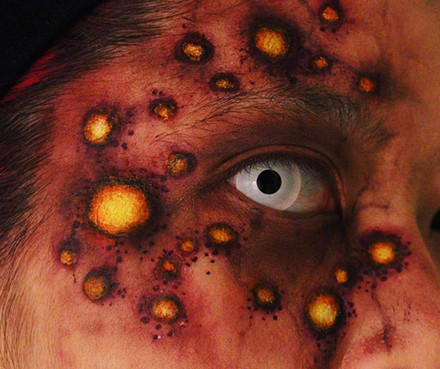 Day 2 of 31 Days of Halloween 2021: InfectedMaterials: kingdom lens, scar wax, alcohol paints, eyeshadow, stage blood