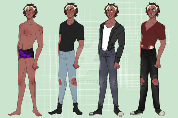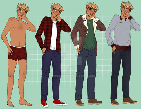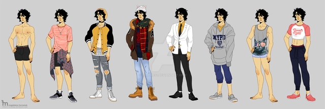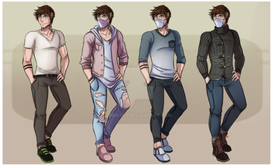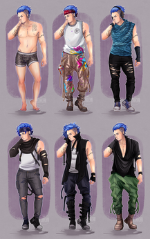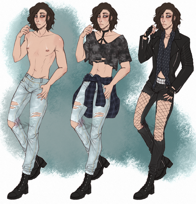 Style wise Kit is pretty drawn to casual grunge type fashion. He’s not particularly exciting about his fashion choices. Lots of Band or Musical branded shirts and sweatshirts, no tank tops. Usually paired with flannel, hoodie, leather or denim. He’s also not entirely fond of shorts but will wear them if the feather gets unbearably hot.