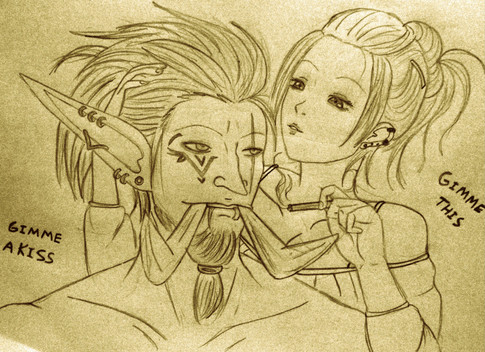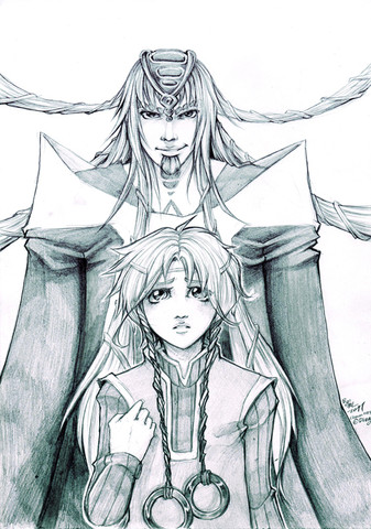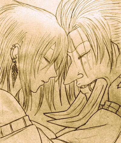 even if you said its a quick little soemthing i think tis a great piece with ka standing like that with one hand on willbender and the other hand on Nina love too how her hand clutches his cloak and i enjoy looking at every fold in both their cloaks. I adore both Nina and ka's hair very much, ka jsut seem to look very very hot in all kinds of length with his gorgeus white hair