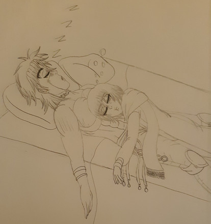 love everything about them both, specially the size differnece, kaos hair and how nina is sleeping against him. looking forward to see mroe of your doodles again hon :3
