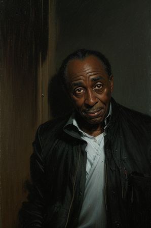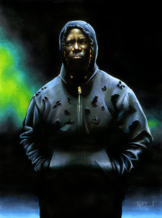#49ers #abstractbackground #baldman #expression #football #legend #portrait #redhoodie