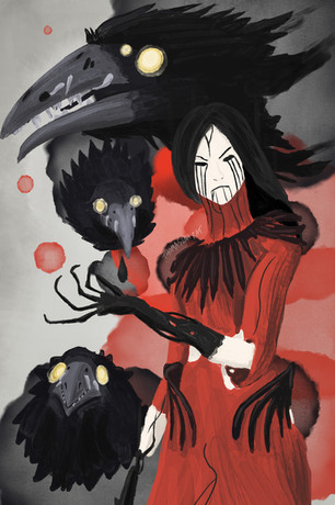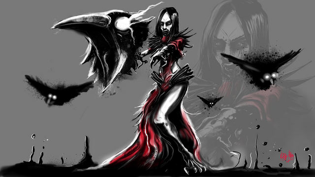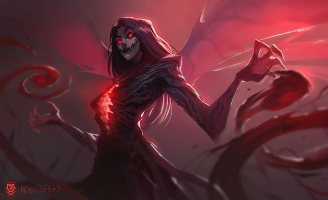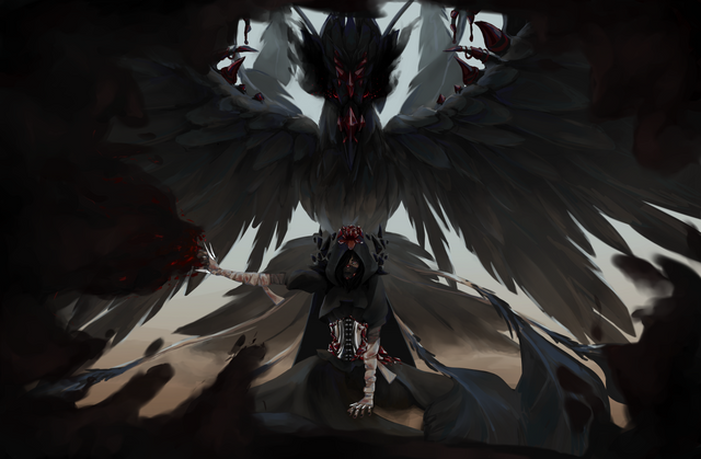 #black #crow #dark #demon #fantasy #fear #fiddlesticks #horror #lol #monster #scythe #creepy #fanart #monstergirl #tentacles #tongueout #league_of_legends