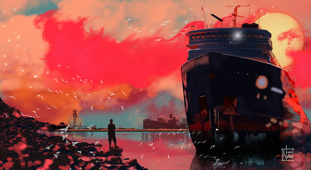 #beach #cold #conceptart #cruise #darkfantasy #digitaldrawing #digitalpainting #fantasy #landscape #lonely #postapocalyptic #ruins #solitude #waterscape #winter #wreck #yellow #foggylandscape #imaginedragons