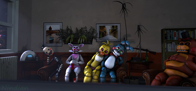 Springtrap: -casually steps over the pile of human remains and sits himself nice and lax in the chair, takes the tablet off the table and starts flipping through god only knows what-