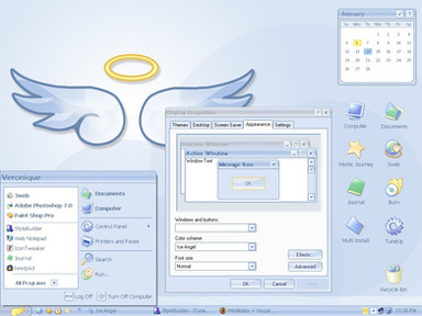 On the second row you have the desktop and its wallpaper. I used the same low-screen-resolution for all of them 'cause it'd be easier to pixel (If I followed the evolution of screen res, win xp's icons would be like a pixel large lol)
