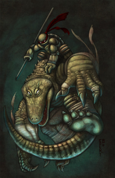Some of the prespective of this picture looks odd but it could be angle which the viewer is seeing. Raph here appears to be the most battered of the turtles, which suits him considering his anger and puglistic nature.