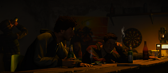 A group of friends, in the late 80s early 90s, stop by a road to have a smoke and drink a bit before heading back.Holy fuck making this picture wore me out.