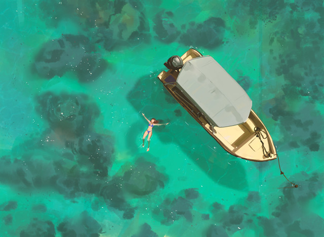 Immersive is understatement. I can almost taste the salt on the breeze, hear the sloshing off the waves lapping at the columns and feel the glare of the sun on her skin. Kinda makes me miss summer