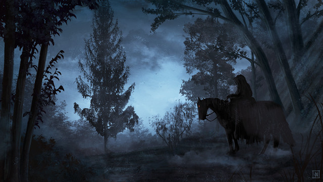 I would have put the big tree behind the rider .The s shape in the road should be a little more obvious.Never the less , it is going on my favorites list .It is beautiful .