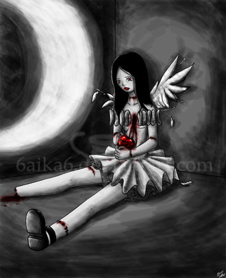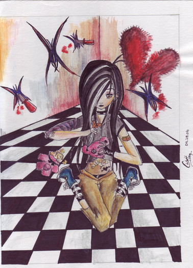 I absolutely love this!! It reminds me of Yuumei's (think i spelled it wrong sorry) work-- the broken doll effect and the scrawlings on the wall behind her, excellent excellent work!! <3