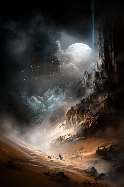 This is a stunning piece. I love what you do with the marshes, the mists, the mountains, and the celestial body. The added touch of the figure gives the whole piece a majestic look. I present you with this llama in tribute to your artistry.