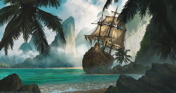 The second I saw this, I knew it had to be AC4 based or AC4 inspired haha Great job! I love that you drew a Man o' War, instead of the usual frigates and such. The schooners look so small!