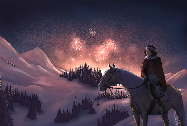 Interesting concept. Fireworkd )modern' and than that guy on a horse that vibes the past