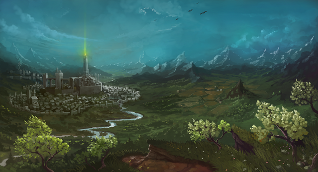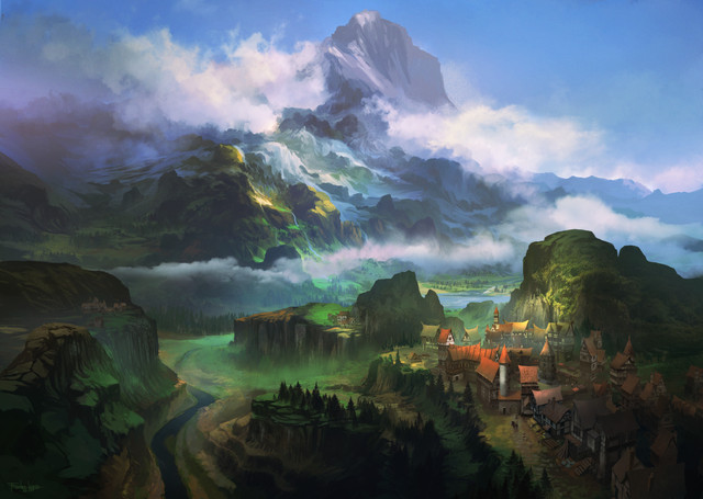 A beautiful landscape. While I prefer 'proper' painting; this is still very pretty to look at. It reminds me of a scene from an Epic RPG.Β