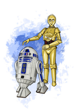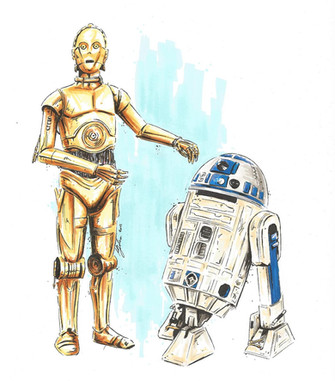 A fun Super Deformed drawing of the famous droid duo from Star Wars.Even though it's very simple and stylized, there was still a lot of detail to get right. Making a simplified, SD version of R2 was especially challenging, so I made him kinda wide. I am still experimenting with unique styles, but it was fun and I like the result.