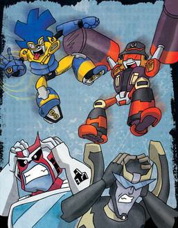 It has been a while since I uploaded anything. Back to work and such, so whatever little time I have, I draw. Here is my version of Breakdown the Stunticon for a TF mosaic I'm working on. Perhaps the lines are too thick and the colours are too saturated. Anyways let me know what you think. Thanks!Related content