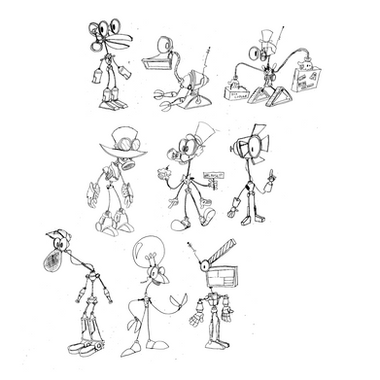 In my 3D I class, we're modeling, rigging, and animating a robot that we had to design. We started out with two robot designs and then ultimately chose one to work on for the rest of the semester, and this is the first design of the two. We started by making turnarounds of the character in order to use as reference when we sculpted them in Maya! This is a robot that I had designed last semester in early 2014: The ButtBot 30,000x10^13!! He's double- butted.Enjoy!