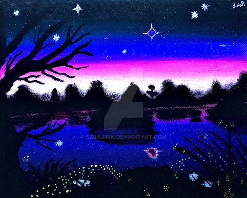 #dreamy #night #water #grass #moon #moonrise #pond #stars
