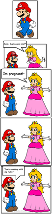 Mario falls down the stairs and all he wants to know is if Somebody toucha is spaghet