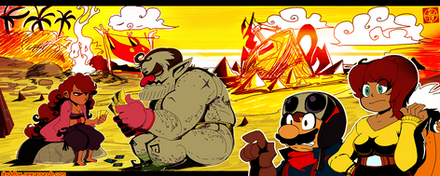 He wanted a pic based off a video project that he's making with Daisy, Yoshi, Engineer, Shantae and Palutena.