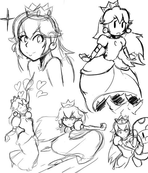 Peach looks serious in this sketch. Is she practicing for the next Smash Bros?