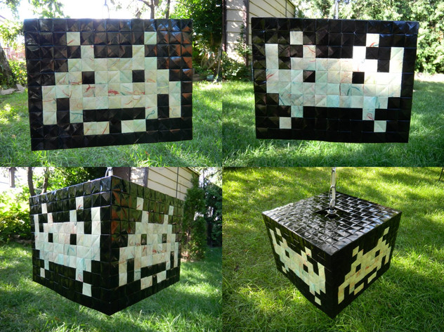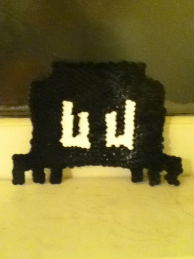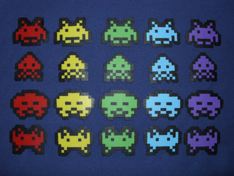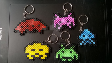 Space Invaders "glow in the dark" perler bead crafts.These are the first Perler bead crafts I've made,