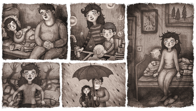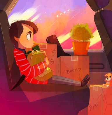 This looks fantastic! The pic looks like a cover of a bran new children's book for children when they're about to move from their house to a new one far away. I love how you made the child's expression how he's looking at the boxes stacked on top of one another, and how he's siting on the stairs. The boy looks like that he's thinking about missing his old house and leaving all of his friends and might not see them again. The colors and lighting looks gloomy, it fits the boy's feelings perfectly! I like that one little story you wrote, it looks like that it's a part of the child's book. Again, wonderful job!