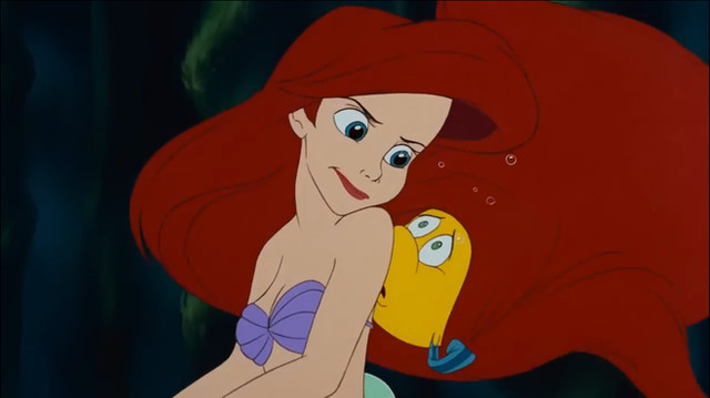 I love how Ariel looks at him and is like "Don't get any idea's unhooking my sheashell bikini!"