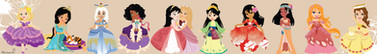 ones are=snow white, pochahanties,mulan,that girl in pink,ariel,jasmine,princess and the frog and RApunzel!!!!!XD thery are awsome!!!!!