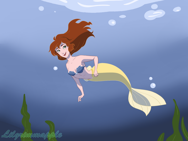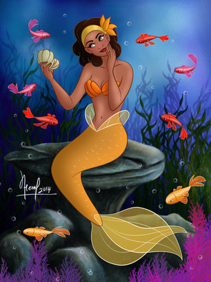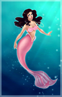 As always, your faithfulness to the Disney style astounding. I'm also a really big fan of the hair color choice; auburn is uncommon in this grouping. The pose is also something very original; she looks both thoughtful and seductive at the same time. Finally, major points for making the tail thick. It's so easy to give mermaids the classic, thin taper, but by giving it more volume, it adds more drama. My only nitpick is the waist. The fish and human forms don't come together cleanly. Maybe by turning the line into a cute belt design, which I know you're more than capable of doing, would make the piece more finished.