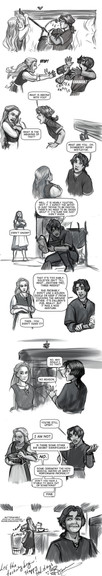 *chuckles* It's a very beautiful work, my friend. Hmm... critique, eh?... The only possible thing that I can currently imagine being improved may be the horse's legs. They seem like they could be a bit less stiff and possibly spread out a little more in the third panel. I also question if they're properly connected to the horses body because of some of the lines. Other than that, this looks wonderful and I'd love to see it in color and with text. *applauds* Bellissimo!