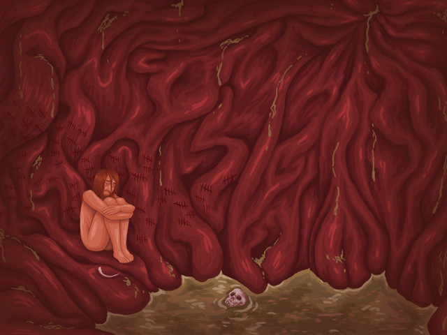 Woman get eaten alive , she has gone swallowing and slowly digesting. She think this moment is last time in her live , so she will enjoy itRelated content