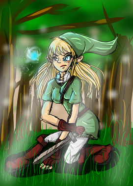 A commission for , this is her Zelda OC, Arill.Arill is Ocarina of Time Link's sister, and possesses water powers. She can be seen here in the Water Temple. *GamingGirl73 was kind enough to let me elaborate on her design a bit.