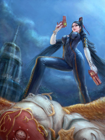Here she is, the lovely Bayonetta! I'd been wanting to do art of her for so long: this particular one is for Wizard Universe & SEGA's contest.Bayonetta's stomped the head of an Affinity in her classic dominatrix fashion. The background is based off one of the areas in the game.