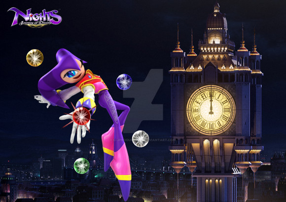 Just messing around with the picture I created of NiGHTS again, this time with a new background, again from Journey of Dreams. My fiance describes it as NiGHTS "walking on air". I like the idea. Thoughts or comments?Related content