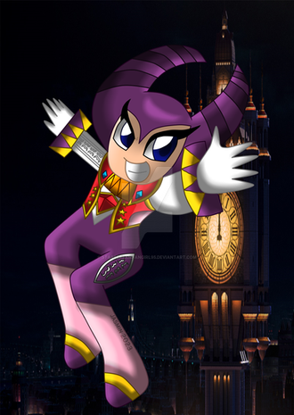 The shininess was quite simple. I took my original colored picture of NiGHTS (viewable in my gallery) and simply flipped it horizontal and then altered the brightness and contrast. Then to bring out the colors more, I chose selective colors so that I could balance it better. I think it had a nice result.