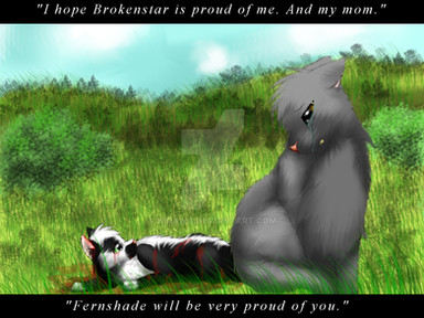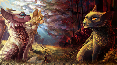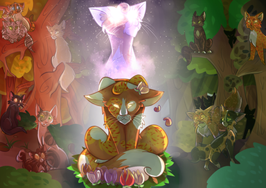 The things I love the most about this piece are Cinderpelt's expression and the setting/composition of this piece You have placed everyone very well that brings a lovely balance for this picture~ The colors are calming yet the light that shines in the middle gives some hope into the "calmness" which is very...calming (I'm so sorry for being not super creative with my adjectives right now pfft-) to look at