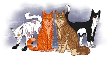 I haven't uploaded anything in 2 months and I havent really drawn full art since then so have this I guess? idk drew this a while ago, maybe 1-2 months agoit shows crowpaw, feathertail, stormfur and tawnypelt, for some map part, as you can guess by the title, perhaps