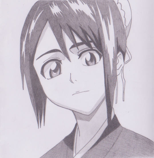 A quick drawing of Rukia,made with pencils HB2, B5 and B7.Inspiration form chapter 85.I was just practising shading.