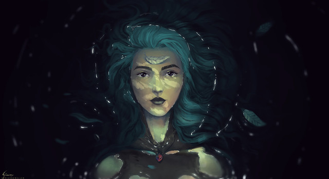 Well first off, I LOVE the feeling this art piece gives. There is a serene and peaceful like atmosphere while floating on water. The colors of forest palette you have used also emphasizes a sense of being one with nature. I love Elves so if she is one, you definitely captured her quite well being one with nature. Another aspect I love is the lighting you have done. You have the focal upon her face and then faded effect outwards. The hair also have amazing details. I love the movement of the hair as well where each strand is floating away from her. I also like how you have differentiate the light values on the clothes indicating where the water is and is not. I also like the jewelry accents you have included- design itself, lighting, and placement.