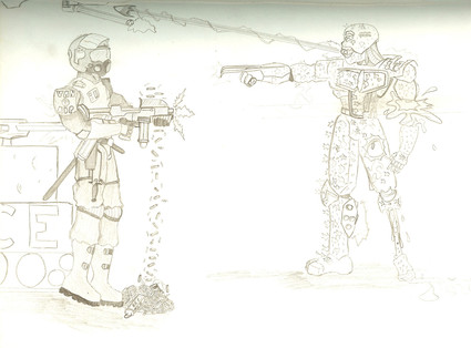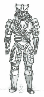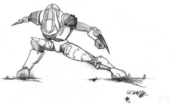 A sketch of an unused robotic/android character named “Adder” from a story I was working on around 98’. While not featured in this sketch, I was planning on featuring legs that split from 2 into 4 (long before “General Grievous” came along) for the use of scaling / climbing buildings. The wing like protrusions from “it’s” back were a wing/propulsion system design.J