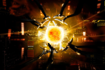 Pretty cool man, The little bits of electricity give it a good feel. But your render could of had a better feel. It does not seem to fit everything. Maybe add some more depth? Or possibly make a model with electricity coming out of it. That would look awesome. Some of the brush seems like it doesn't fit. They look more like sparkles than they do sparks. But this isn't to bad. But I know you can do better