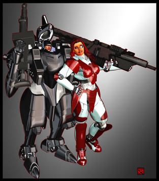 Seriously, except for the shoulder things, makes me think of Vasquez and Drake from Aliens.