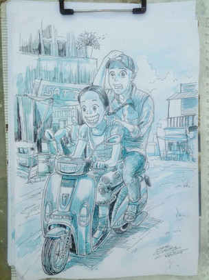 He is no Hitler..that's me actually.. And my papa on back seat.the drawing is based on the incident I experienced..