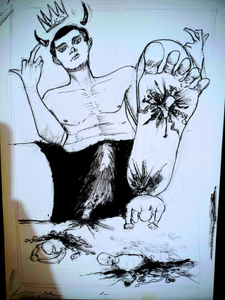 He' not Hitler ..actually that's me..and my papa in the back ...the drawing relates to an experience i had in the past ...