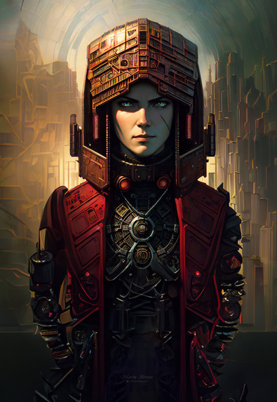 In a world bathed in neon and shadows, walked the ultimate bounty hunter. Her cybernetic gaze scanned the streets fractured by virtual reality. Implants gleamed in the acid rain, witnesses of a humanity entangled in cables and digital yearnings. Beneath her worn coat, she concealed tales of betrayal and redemption. With each step, the future and the past collided, creating a captivating dystopian present. She was a lonely queen in an empire of bits, searching for answers in an electronic cosmos. Her mission: to decode the line between the real and the artificial, as the lights of the city guided her destiny.-----------------------------------